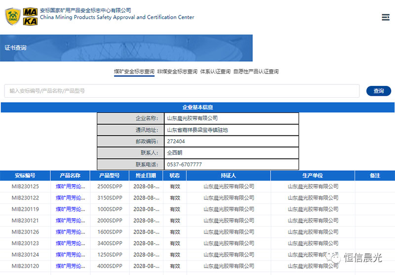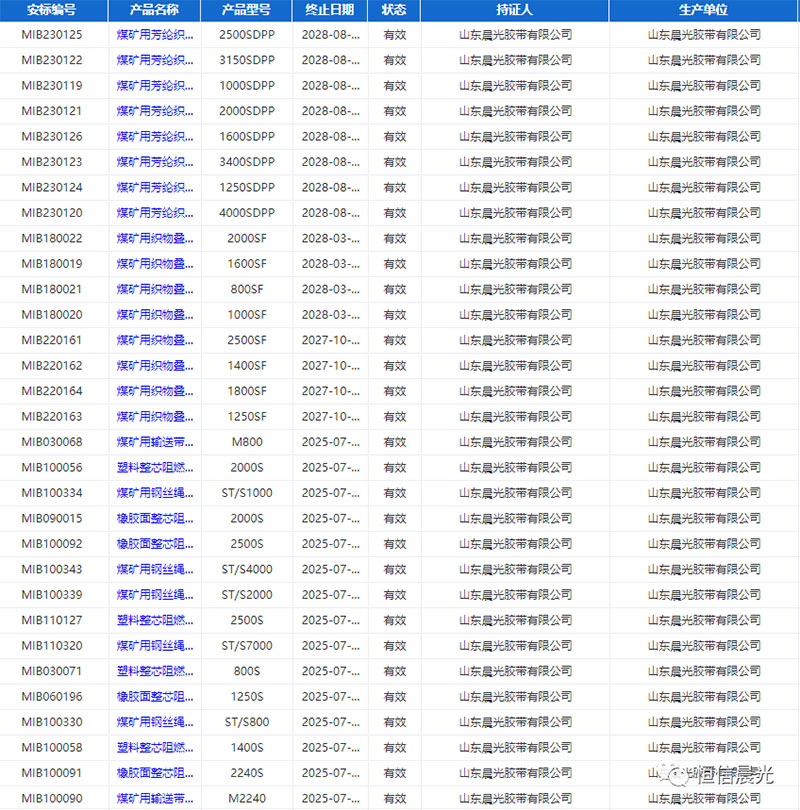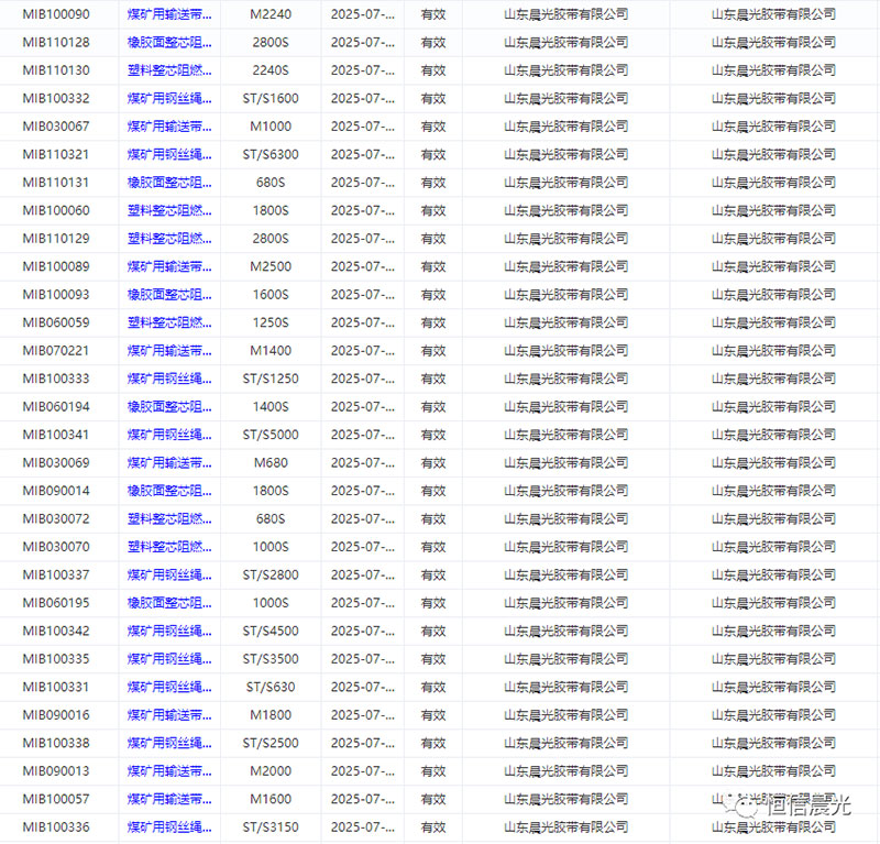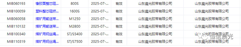 截止目前,公司又新增8項煤礦用芳綸織物芯阻燃輸送帶安標證書。