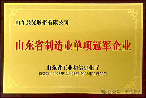 根據(jù)《山東省關(guān)于加快培育發(fā)展制造業(yè)優(yōu)質(zhì)企業(yè)的實(shí)施意見(jiàn)》和《關(guān)于開(kāi)展2025年山東省制造業(yè)單項(xiàng)冠軍企業(yè)遴選和復(fù)核評(píng)價(jià)的通知》,經(jīng)嚴(yán)格的限定性條件論證審核、行業(yè)審查和專家論證等多重環(huán)節(jié),山東晨光膠帶有限公司最終從眾多企業(yè)中脫穎而出,榮獲“山東省制造業(yè)單項(xiàng)冠軍企業(yè)”稱號(hào)。